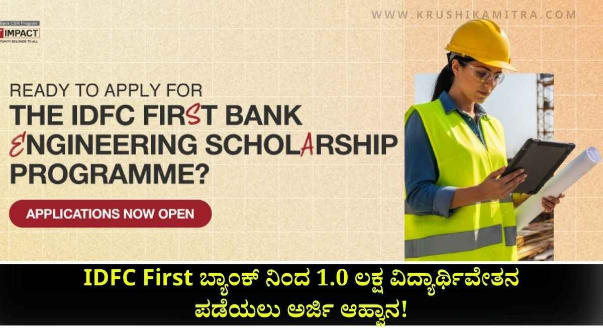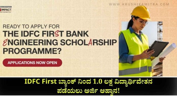 2025-2026 ನೇ ಸಾಲಿನ ಐಡಿಎಫ್ಸಿ ಫಸ್ಟ್ ಬ್ಯಾಂಕ್ ವತಿಯಿಂದ ಐಡಿಎಫ್ಸಿ ಫಸ್ಟ್ ಬ್ಯಾಂಕ್ ಎಂಜಿನಿಯರಿಂಗ್(IDFC First Bank Engineeringn Scholarship)ವಿದ್ಯಾರ್ಥಿವೇತನವನ್ನು ಪಡೆಯಲು ಅವಕಾಶವಿದ್ದು ಎಂಜಿನಿಯರಿಂಗ್ ನಲ್ಲಿ ವ್ಯಾಸಂಗ ಮಾಡುತ್ತಿರುವ ವಿದ್ಯಾರ್ಥಿಗಳಿಗೆ ವರ್ಷಕ್ಕೆ ₹1 ಲಕ್ಷದವರೆಗೆ ವಿದ್ಯಾರ್ಥಿವೇತನವನ್ನು ಪಡೆಯಲು ಅರ್ಜಿಯನ್ನು ಆಹ್ವಾನಿಸಲಾಗಿದೆ.