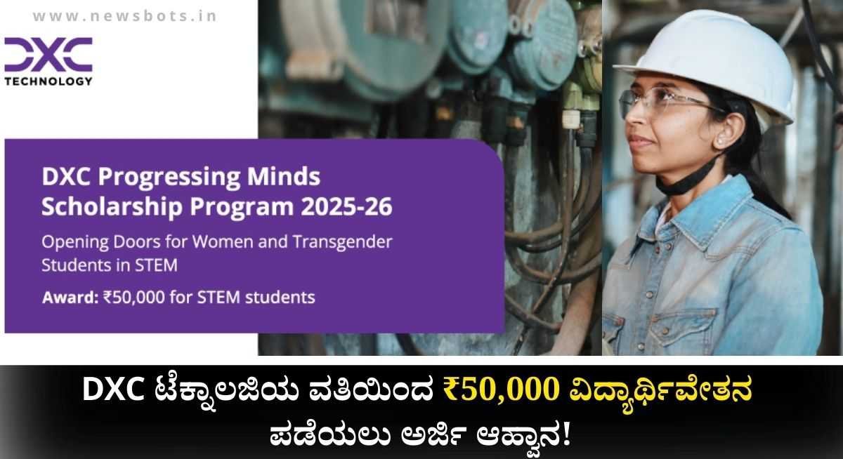 2025-2026 ನೇ ಸಾಲಿನ DXC ಪ್ರೋಗ್ರೆಸಿಂಗ್ ಮೈಂಡ್ಸ್ ಸ್ಕಾಲರ್ಶಿಪ್ ವತಿಯಿಂದ DXC ಟೆಕ್ನಾಲಜಿಯ(Progressing Minds Scholarship) ಅಡಿಯಲ್ಲಿ ಹಿಂದುಳಿದ ವರ್ಗಗಳ ಪದವಿ ವಿದ್ಯಾರ್ಥಿಗಳಿಗೆ ಅವರ ಮುಂದಿನ ಶಿಕ್ಷಣವನ್ನು ಮುಂದುವರಿಸಲು ₹50,000 ವಿದ್ಯಾರ್ಥಿವೇತನವನ್ನು ಪಡೆಯಲು ಅರ್ಹ ವಿದ್ಯಾರ್ಥಿಗಳಿಂದ ಅರ್ಜಿಯನ್ನು ಆಹ್ವಾನಿಸಲಾಗಿದೆ.