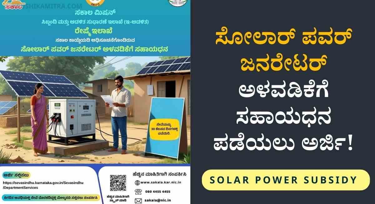 HomeNewsSolar Power Subsidy-ಸೋಲಾರ್ ಪವರ್ ಜನರೇಟರ್ ಅಳವಡಿಕೆಗೆ ಸಹಾಯಧನ ಪಡೆಯಲು ಅರ್ಜಿ ಆಹ್ವಾನ!